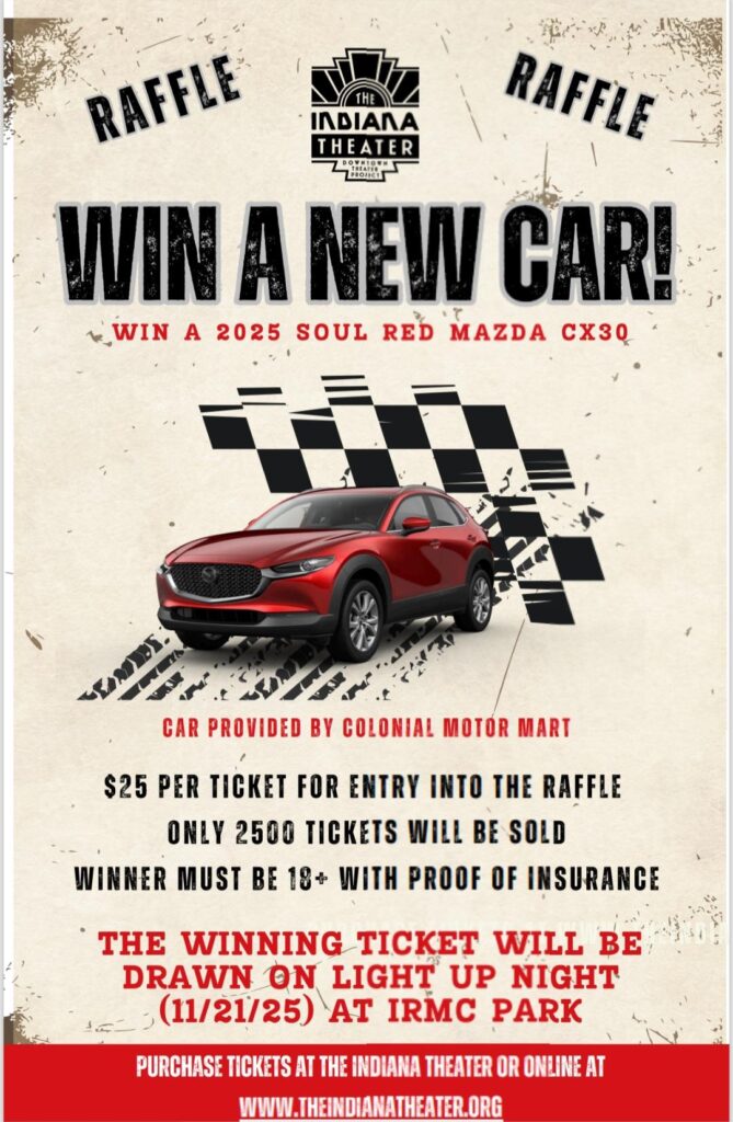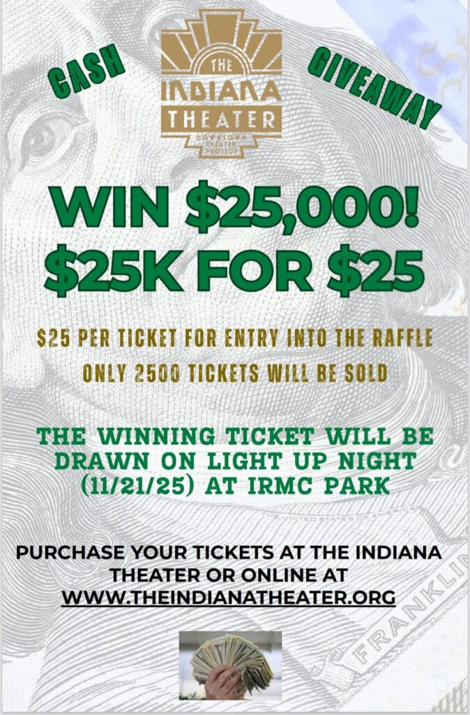 Folks, we’re doing some BIG time Raffles to raise money for The Indiana Theater!